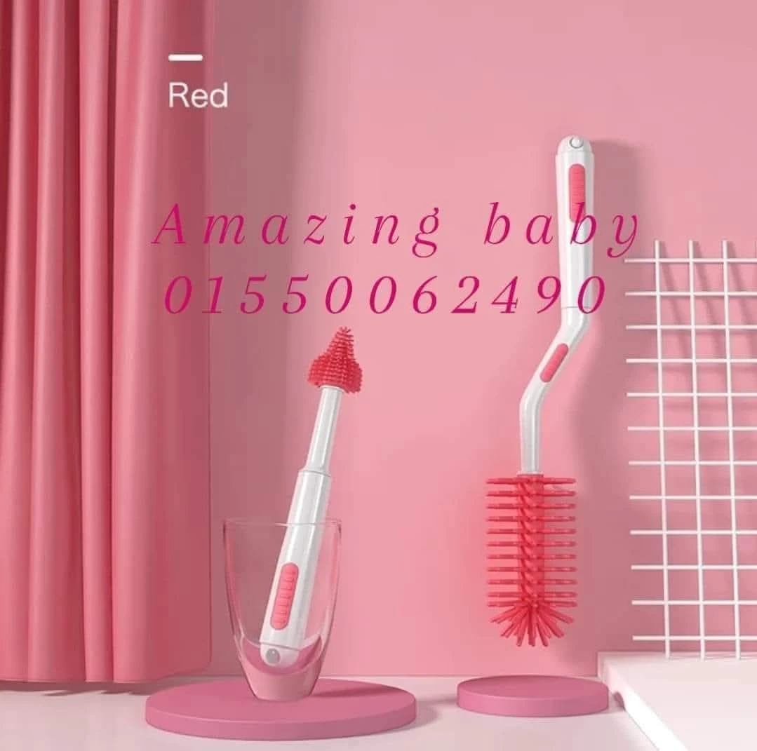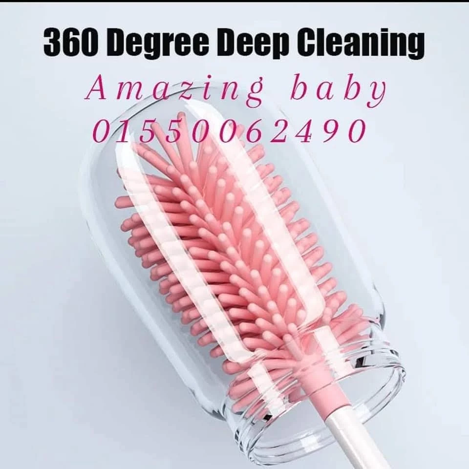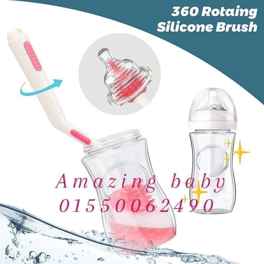 ١) فرشه كبيره لتنظيف الببرونات مكونه من الشعيرات السيليكون بخاصية الدوران ٣٦٠ درجة لتسهيل مهمة التنظيف