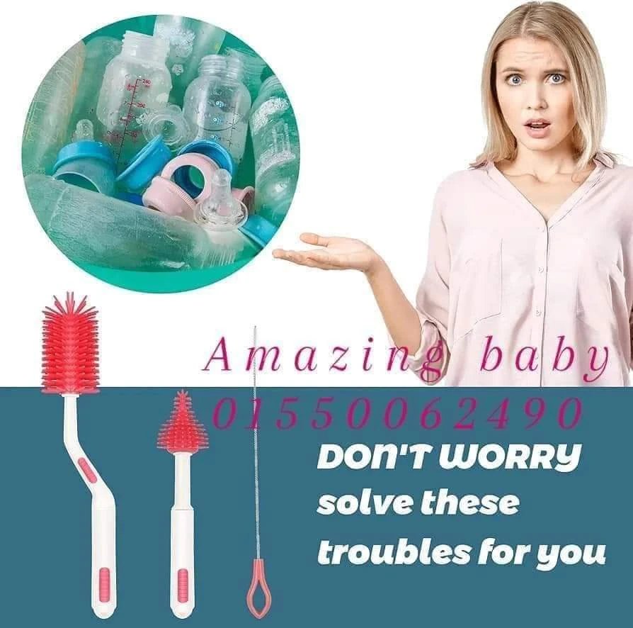 طقم فرش لتنظيف الببرونات و الحلمات من امازينج 💙 الطقم مكون من ٣ قطع 👇