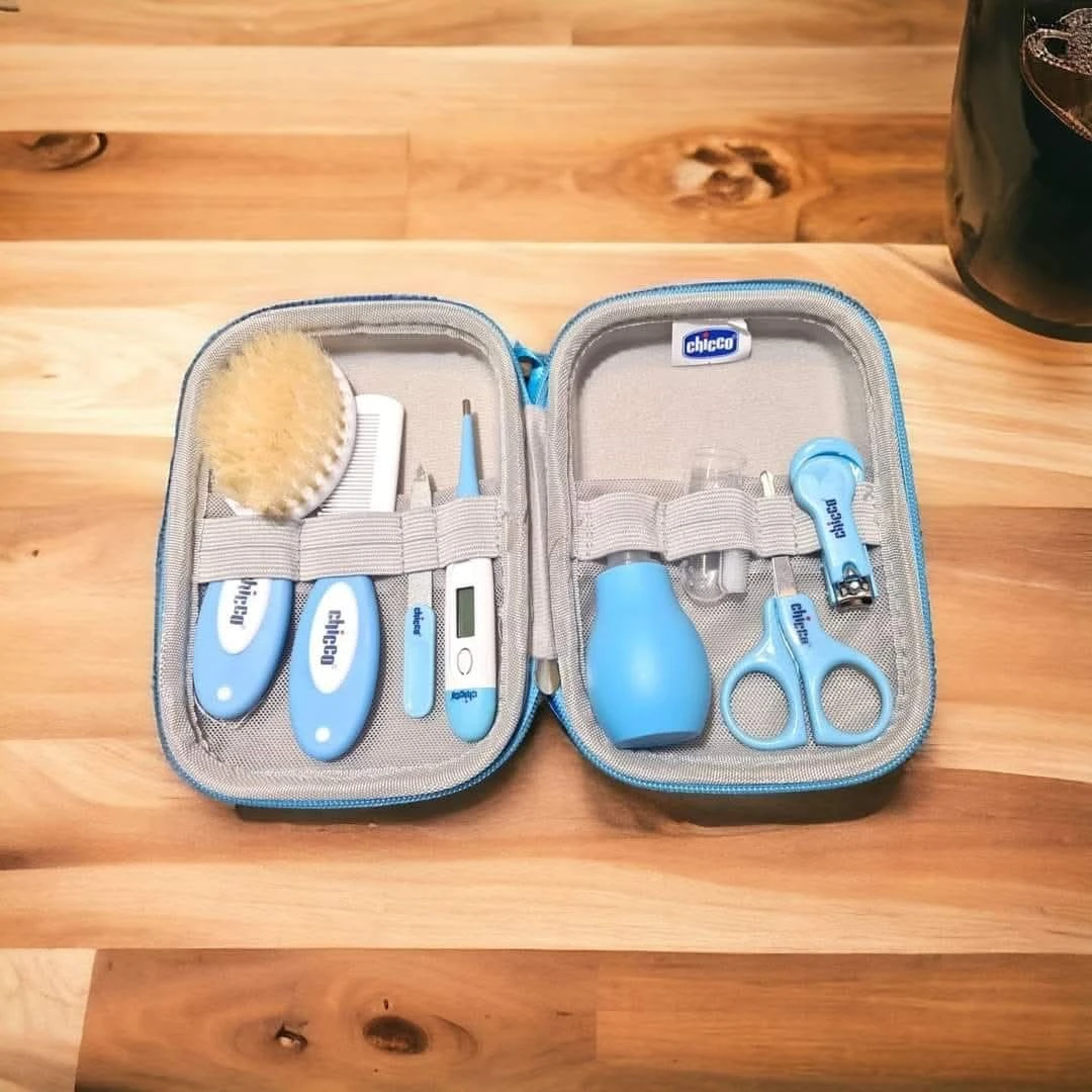 طقم chicco العناية الكامله لطفلك 🤱 مكون من ٨ قطع 🍒ترمومتر ديجيتال 🍒فرشة شعر طبيعى 🍒مشط 🍒مبرد 🍒فرشة لثة سيليكون 🍒شفاط أنف 🍒مقص 🍒قصافة +بوكس بسوسته خاص بالطقم