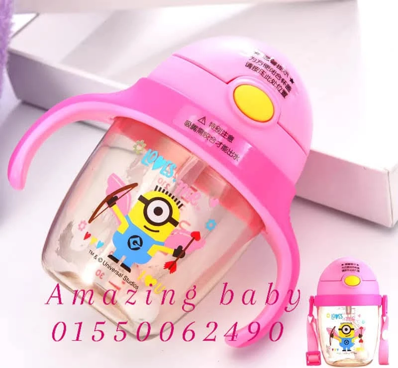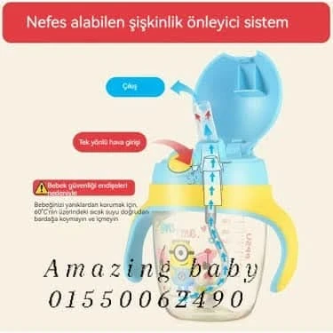 مصمم بغطاء علوى والكوب ليه ايد علشان الطفل يمسكه