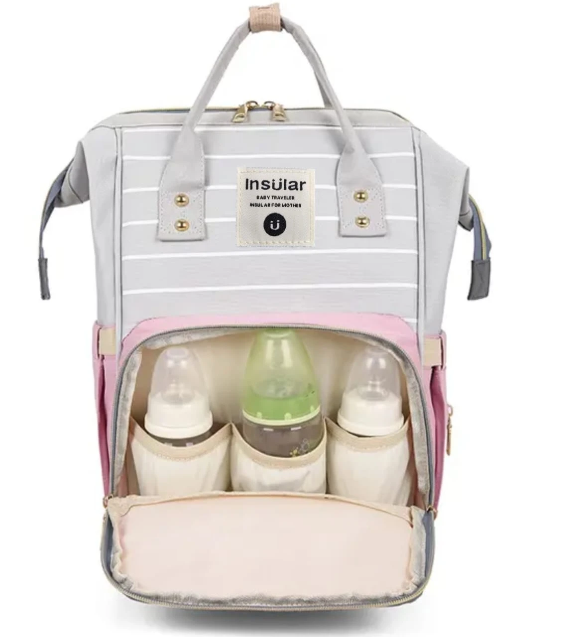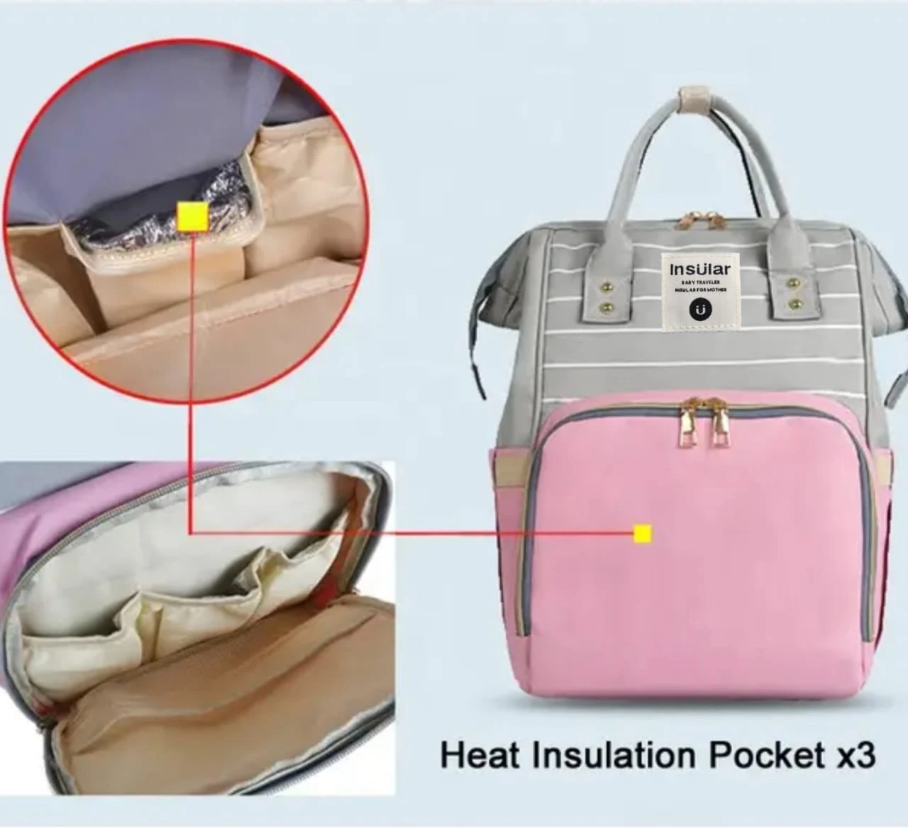 شنطه مامي باك ماركة insular • خامات سوبر سوفت ووتر بروف مقاومة للماء والاتساخ سهلة التنظيف و التخزين، جودة ممتازة. . تبطين داخلي عالى الجوده . مقسمة من الداخل لتناسب احتياجات كل ام . أحزمة كتف مبطنه لراحة الام و قابلة للتعديل . جيوب حراريه للحفاظ على درجة حرارة البيرونه. . جيب للغيارات المبللولة . جيب للمتعلقات الشخصية و الموبايل . مدخل خلفي بسوسته لسهولة الوصول الي قاع الشنطة . جيب جانبى بفتحة لسحب المناديل بسهولة ملحقات اضافيه : مشمع غيار واتر برووف مبطن عدد 2 هوك للاستولر