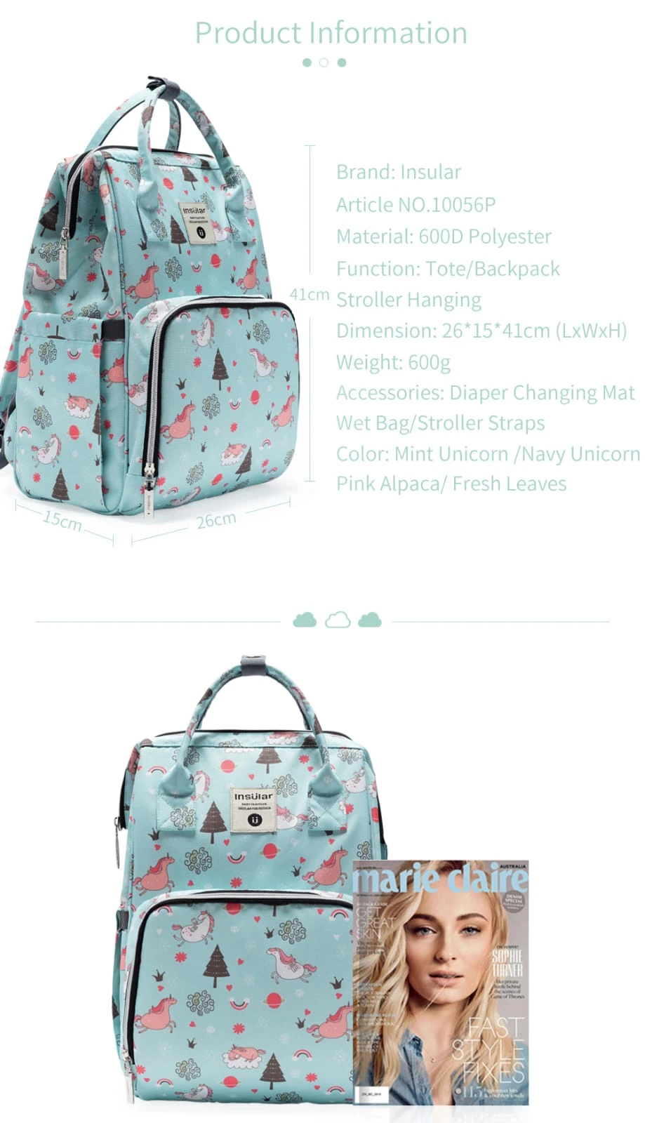 شنطه مامي باك ماركة insular • خامات سوبر سوفت ووتر بروف مقاومة للماء والاتساخ سهلة التنظيف و التخزين، جودة ممتازة. . تبطين داخلي عالى الجوده . مقسمة من الداخل لتناسب احتياجات كل ام . أحزمة كتف مبطنه لراحة الام و قابلة للتعديل . جيوب حراريه للحفاظ على درجة حرارة البيرونه. . جيب للغيارات المبللولة . جيب للمتعلقات الشخصية و الموبايل . مدخل خلفي بسوسته لسهولة الوصول الي قاع الشنطة . جيب جانبى بفتحة لسحب المناديل بسهولة ملحقات اضافيه : مشمع غيار واتر برووف مبطن عدد 2 هوك للاستولر