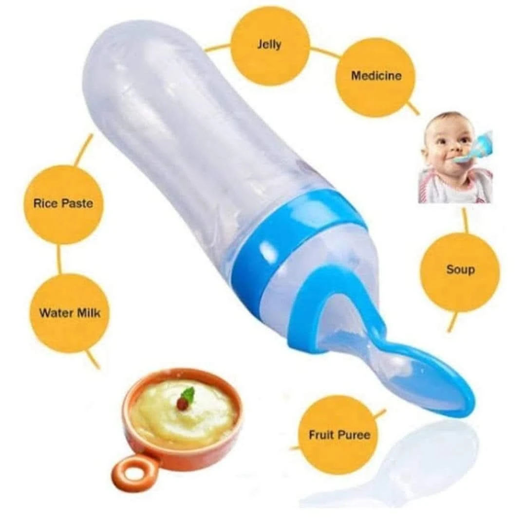 ببرونه بمعلقة لبدايه اطعام الطفل كل المأكولات المهروسة بأمان (خضار وفواكه مهروسه - سيريلاك ... الخ) تستعمل بدايه من ٤ شهور سيليكون امن خالي من BPA غطاء للحفاظ عليها معقمة حجز اللون بنت او ولد